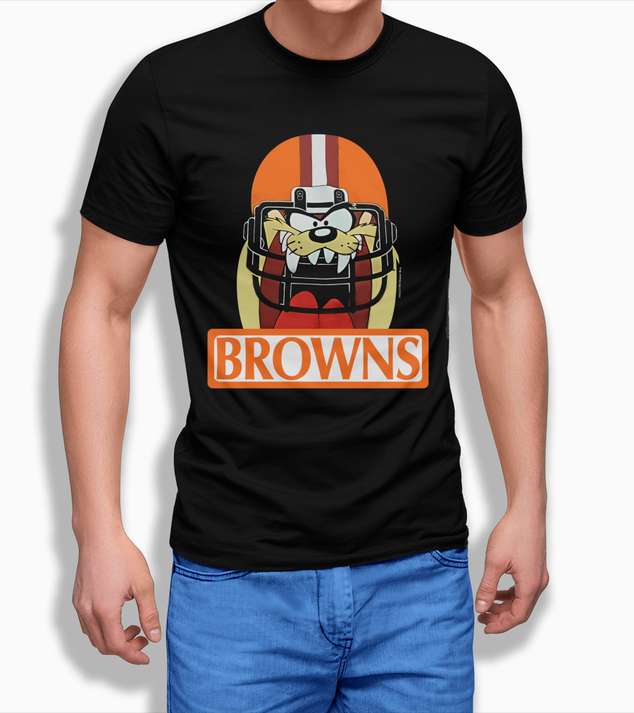 1993 Cleveland Browns Warner Bros Tazmanian Taz Devil Helmet Browns Shirt