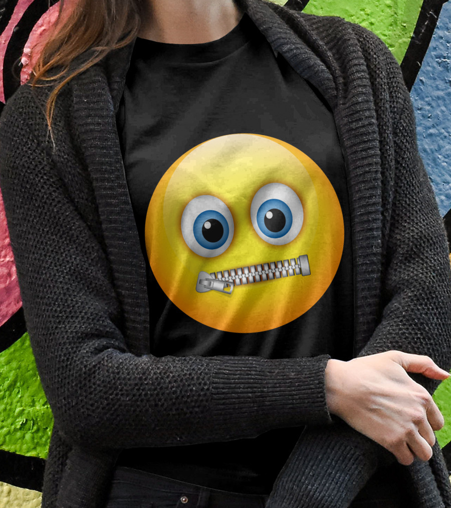 Zipper Mouth Face Emoji Large Eyes Shirt
